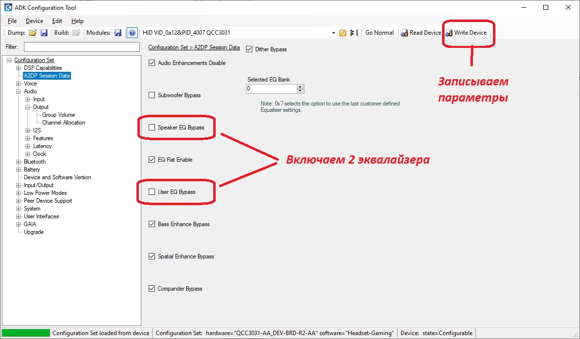 - Настройки эквалайзеры слетают после перезагрузки чипа? Нужно зашить файл HTF в постоянную память через программу QCC Audio Tool.