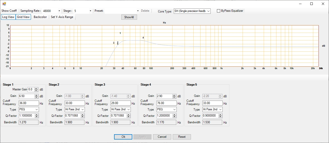 Если нужна другая конфигурация, выбираем нужную и сохраняем, чип сам добавит кроссовер в цепочку аудио процессора: